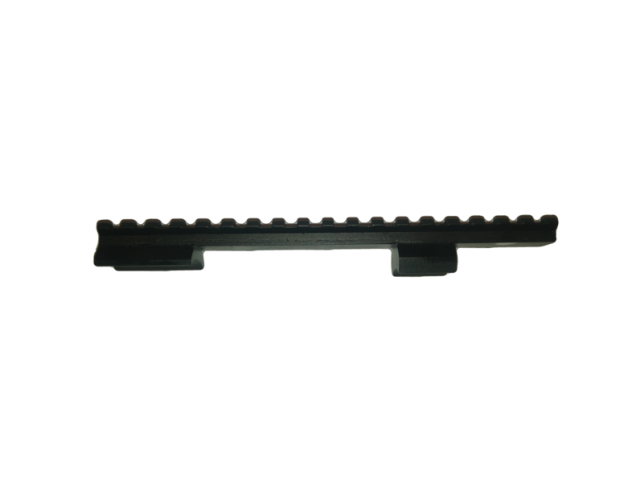 Régua Picatinny em aço comprida para Parker-Hale ou Zastava, funciona em todas as armas que usem bases Leupold, especialmente indicada para os casos em que há necessidade de recuar a mira de modo a que fique mais próxima do olho, nomeadamente para miras de visão nocturna.